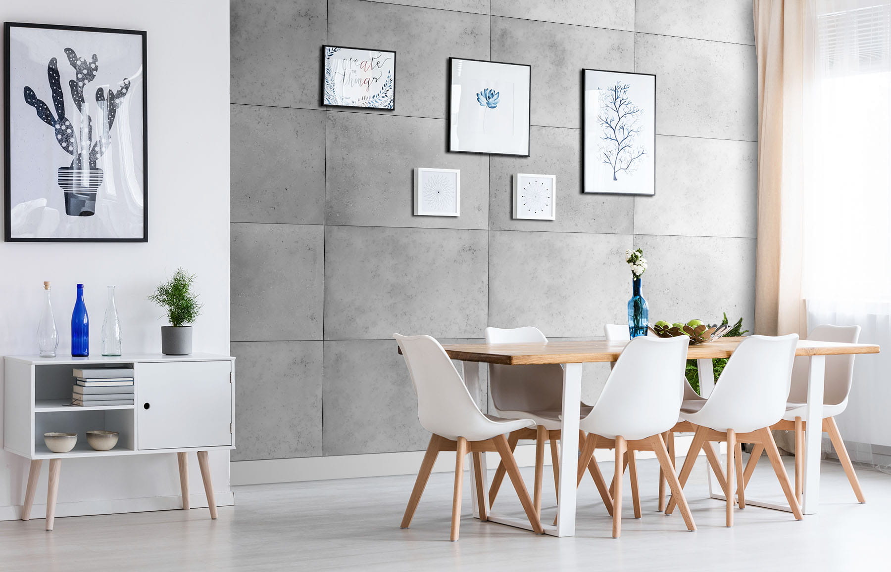 Panele gipsowe o strukturze i wyglądzie betonu architektonicznego w kolorze klasycznej szarości. Model Concrete Plain w kolorze Dove Grey jest jednym z naszych najpopularniejszych i najlepiej sprzedających się paneli. Idealnie sprawdzi się w nowoczesnym salonie lub ozdobi modernistyczne pomieszczenie przestrzeni publicznej.