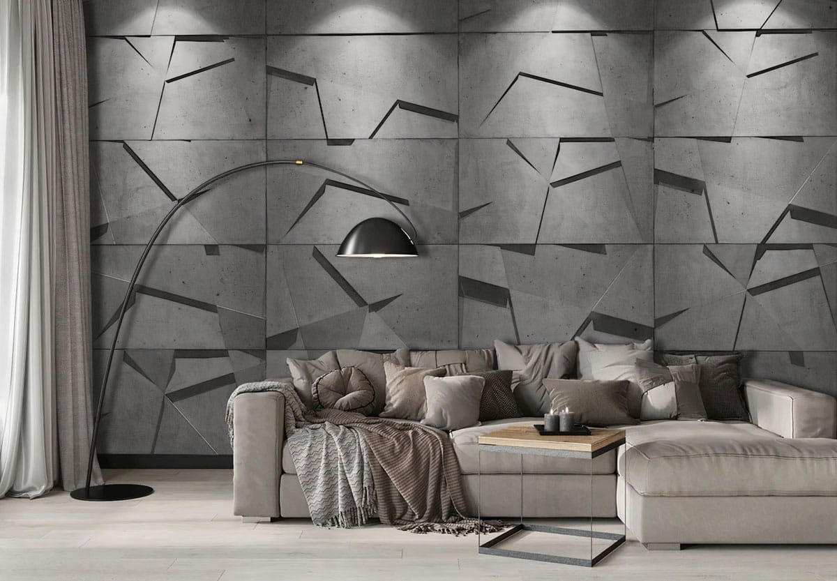 Beton architektoniczny, który swoim wyglądem przypomina pokruszone płyty. Dostępny jest w dwóch modelach, które można ze sobą łączyć. Beton architektoniczny może być montowany również na zewnątrz budynku, ponieważ jest odporny na warunki atmosferyczne. Nasza propozycja jest wyjątkowo innowacyjna i nowoczesna i będzie najlepiej wyglądać na dużej powierzchni. Płyty są dostępne w dwóch kolorach: jasnoszarym i ciemnoszarym.